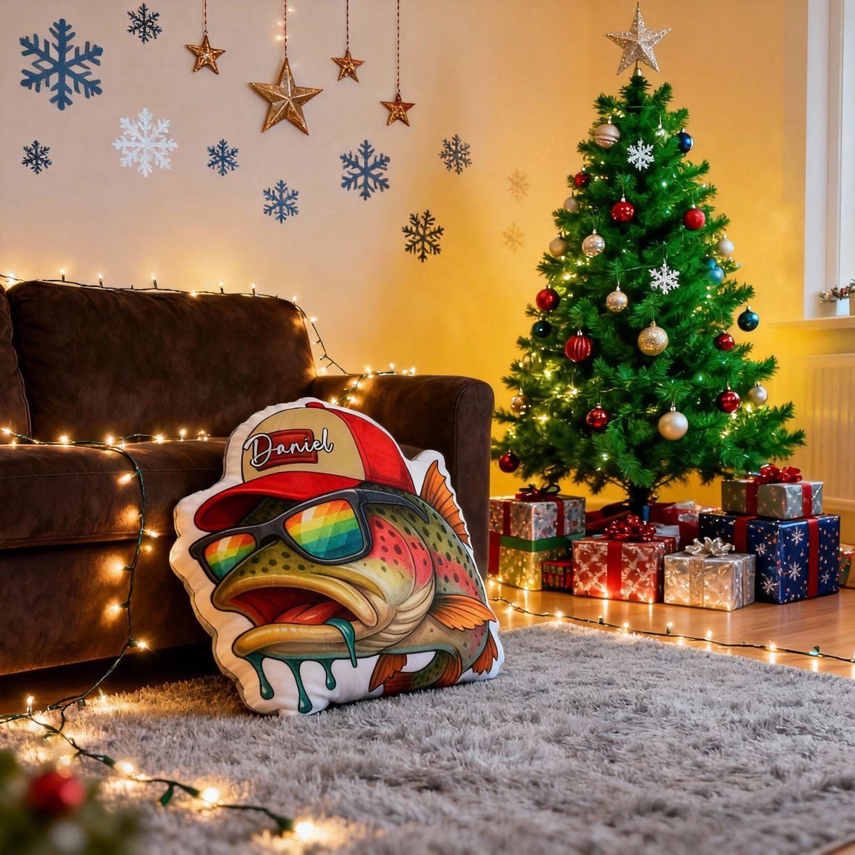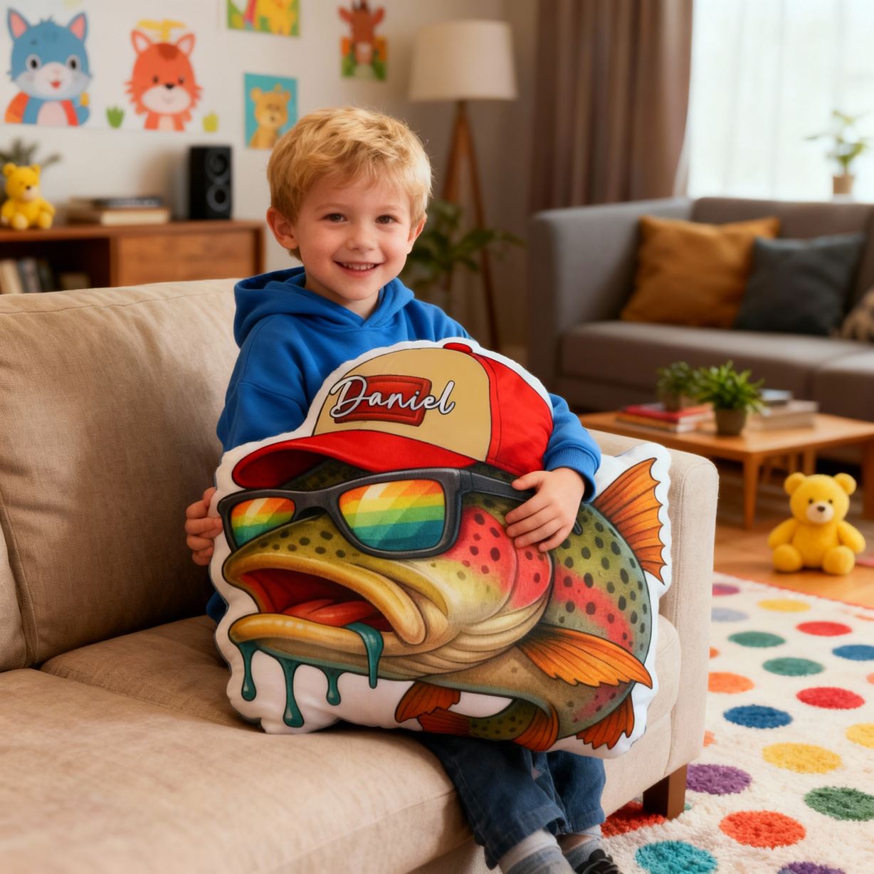 Individuelles Namens-Kissen Fisch-Print Lustiges Kissen Weihnachtsgeschenk für Kinder