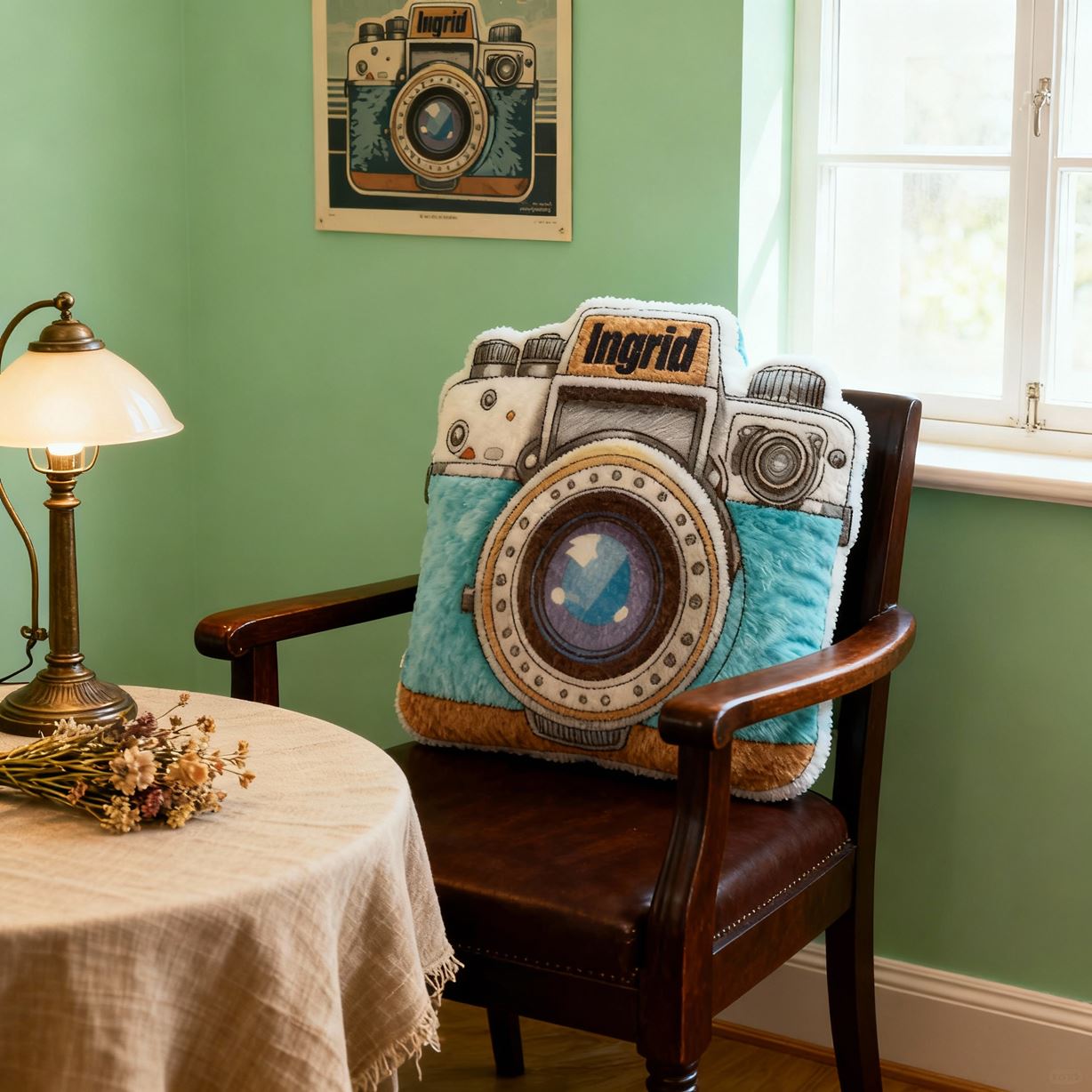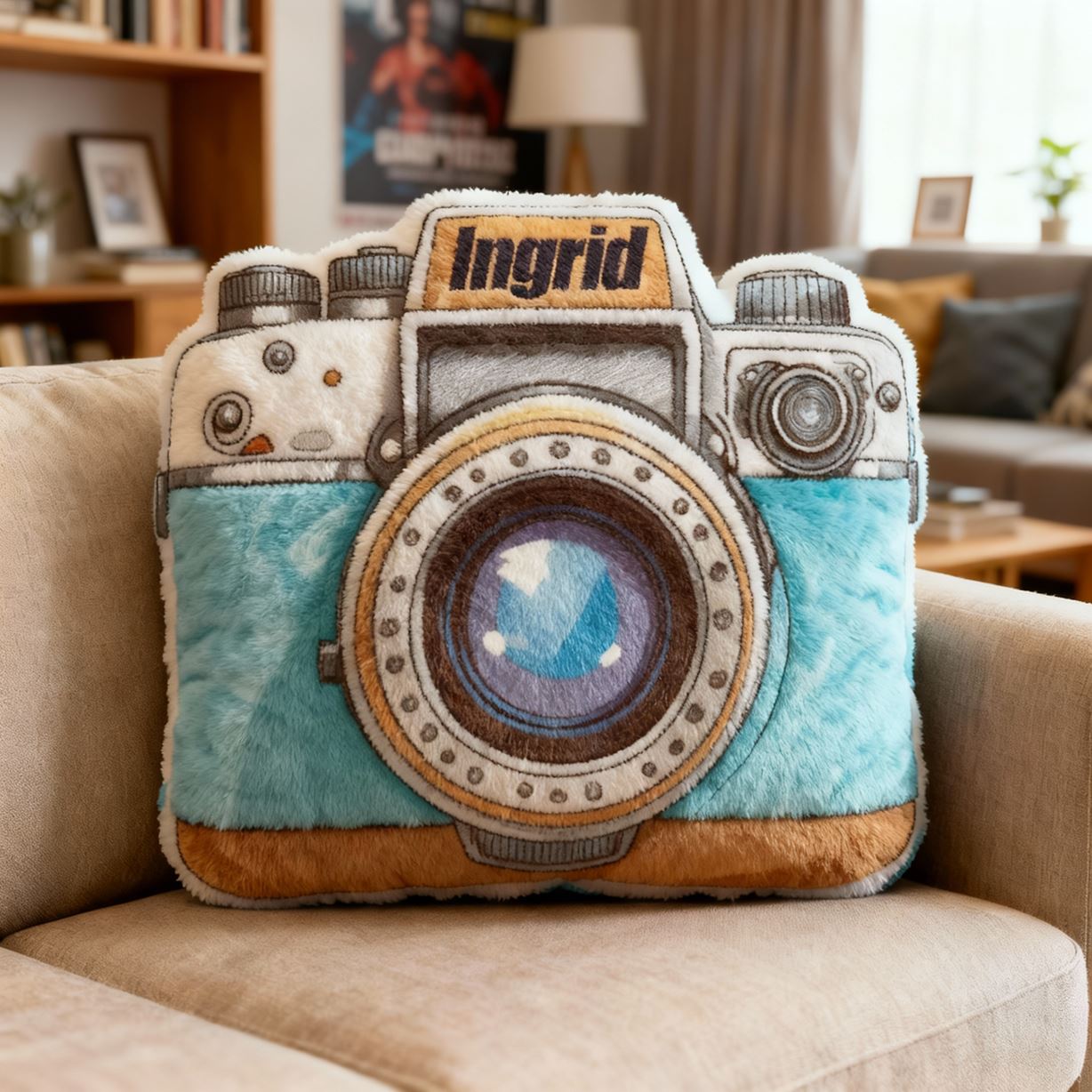 Personalisiertes blaues Kamerakissen Plüschkissen Cartoon-Stoffdekoration für Kinder