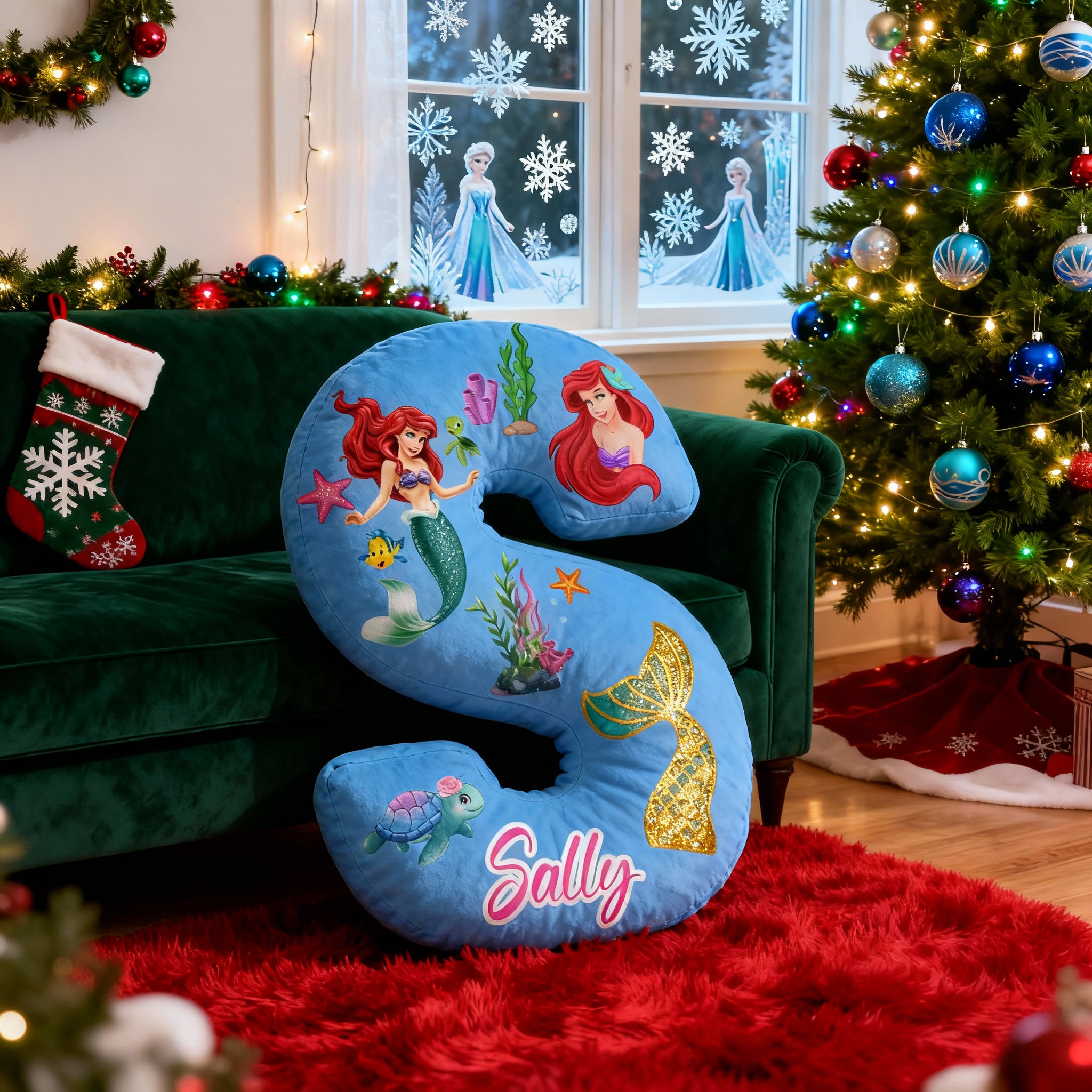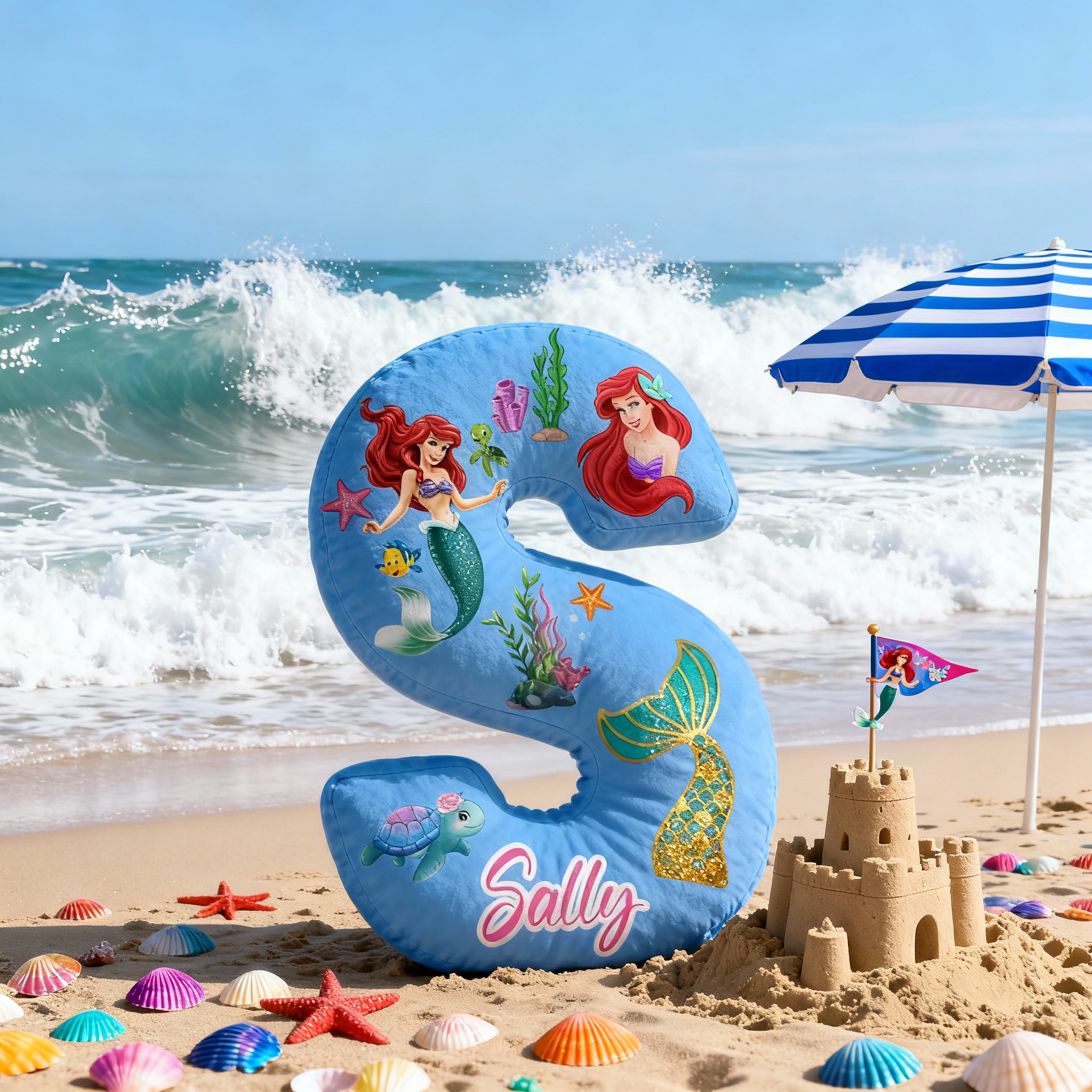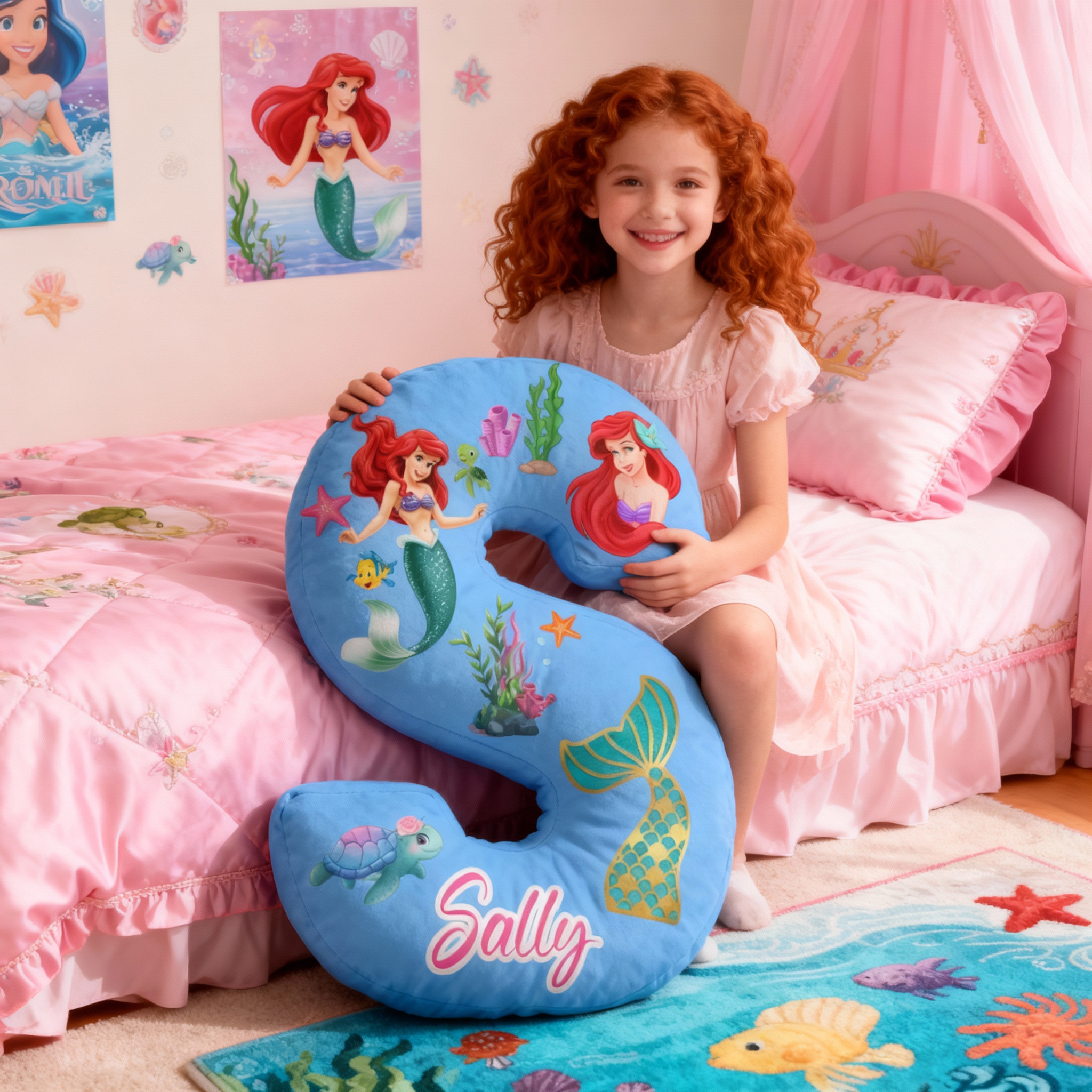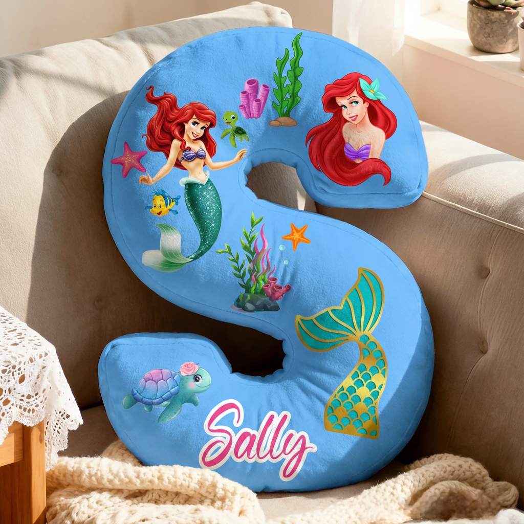Personalisiertes Kissen mit Meerjungfrauen und Schildkrötenmotiv ein besonderes Geschenk für Kinder