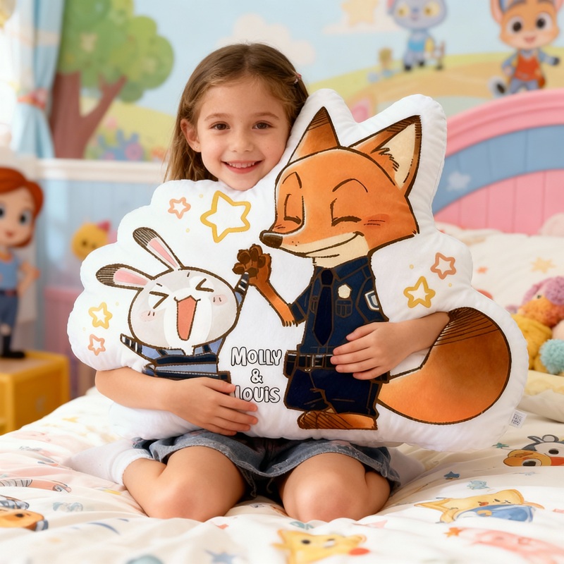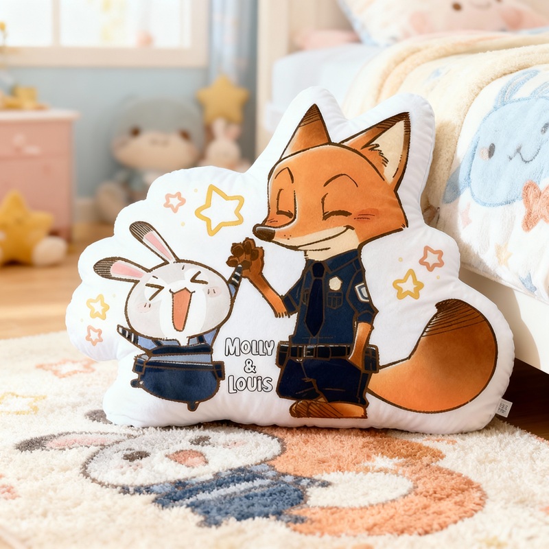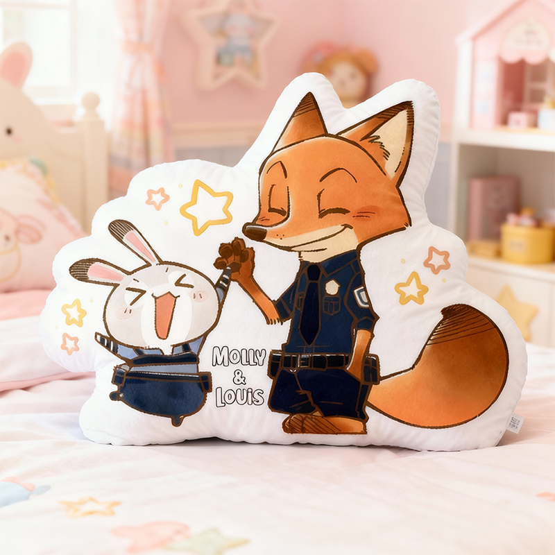 Personalisiertes Kissen in Cartoon-Form mit Kaninchen und Fuchs die sich abklatschen entzückendes Design Geschenk für Kinder