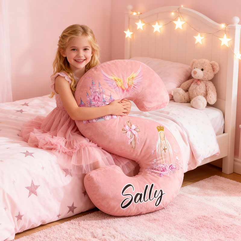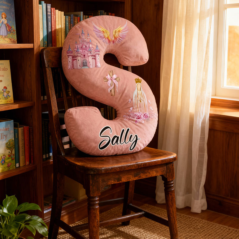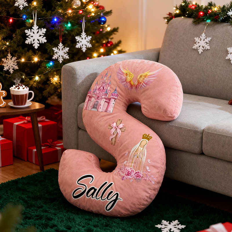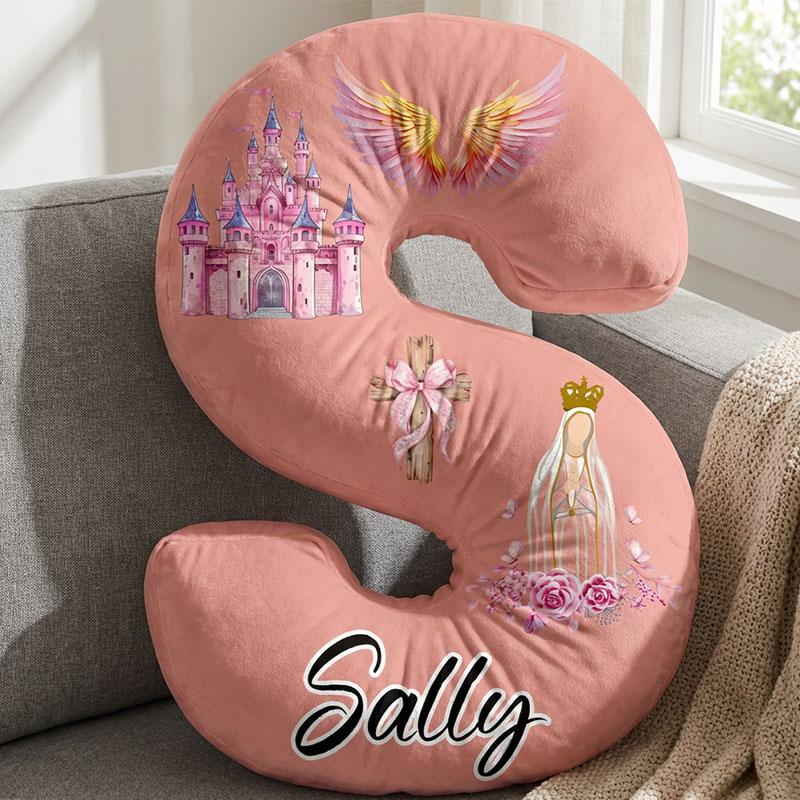Personalisiertes Kissen mit Cartoon-Flügelburgmuster und Buchstaben süßes Geschenk für Mädchen