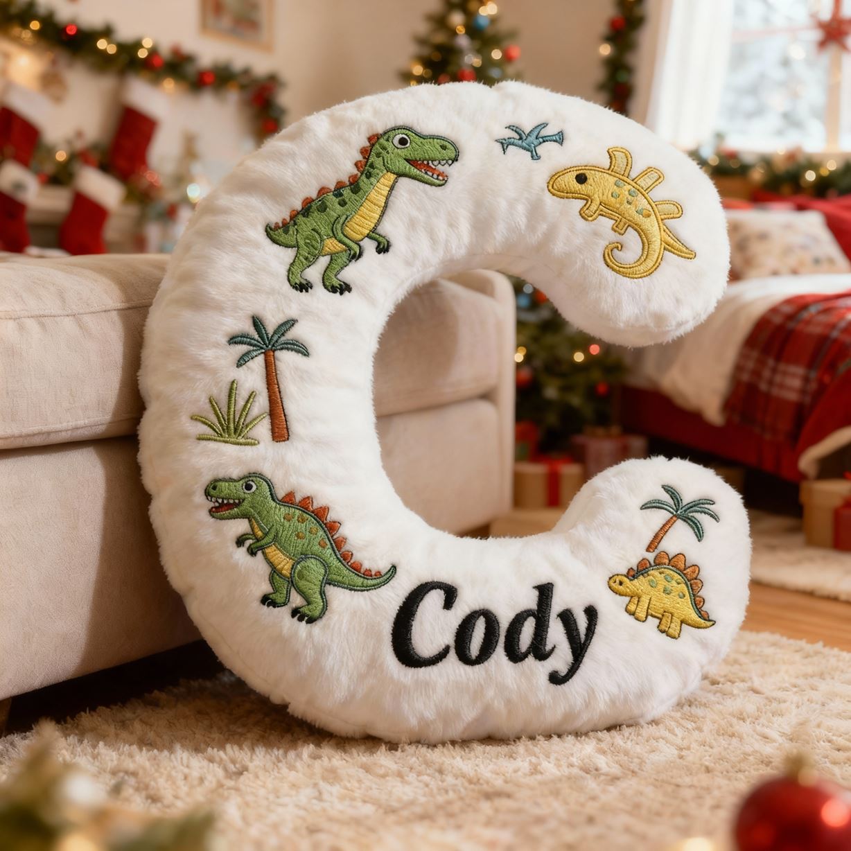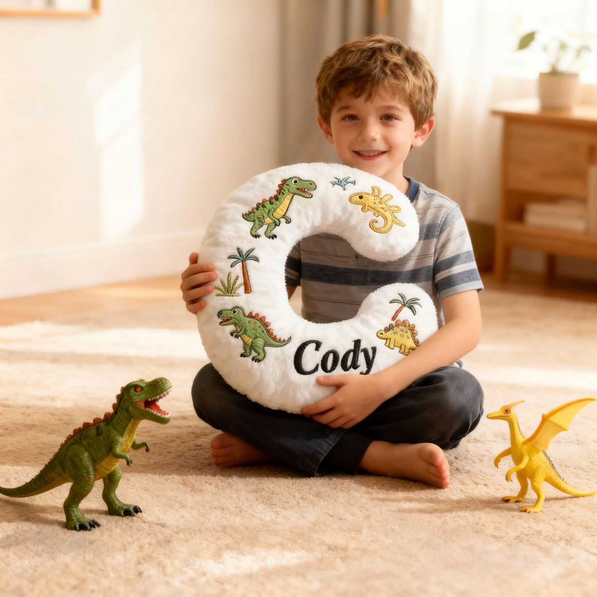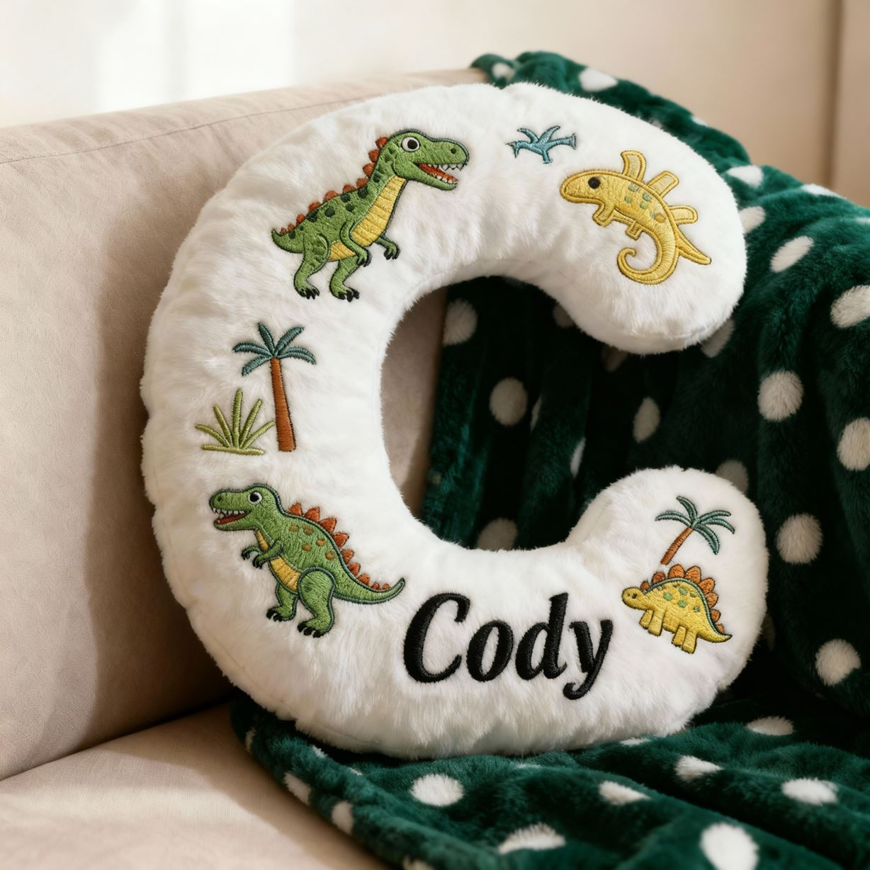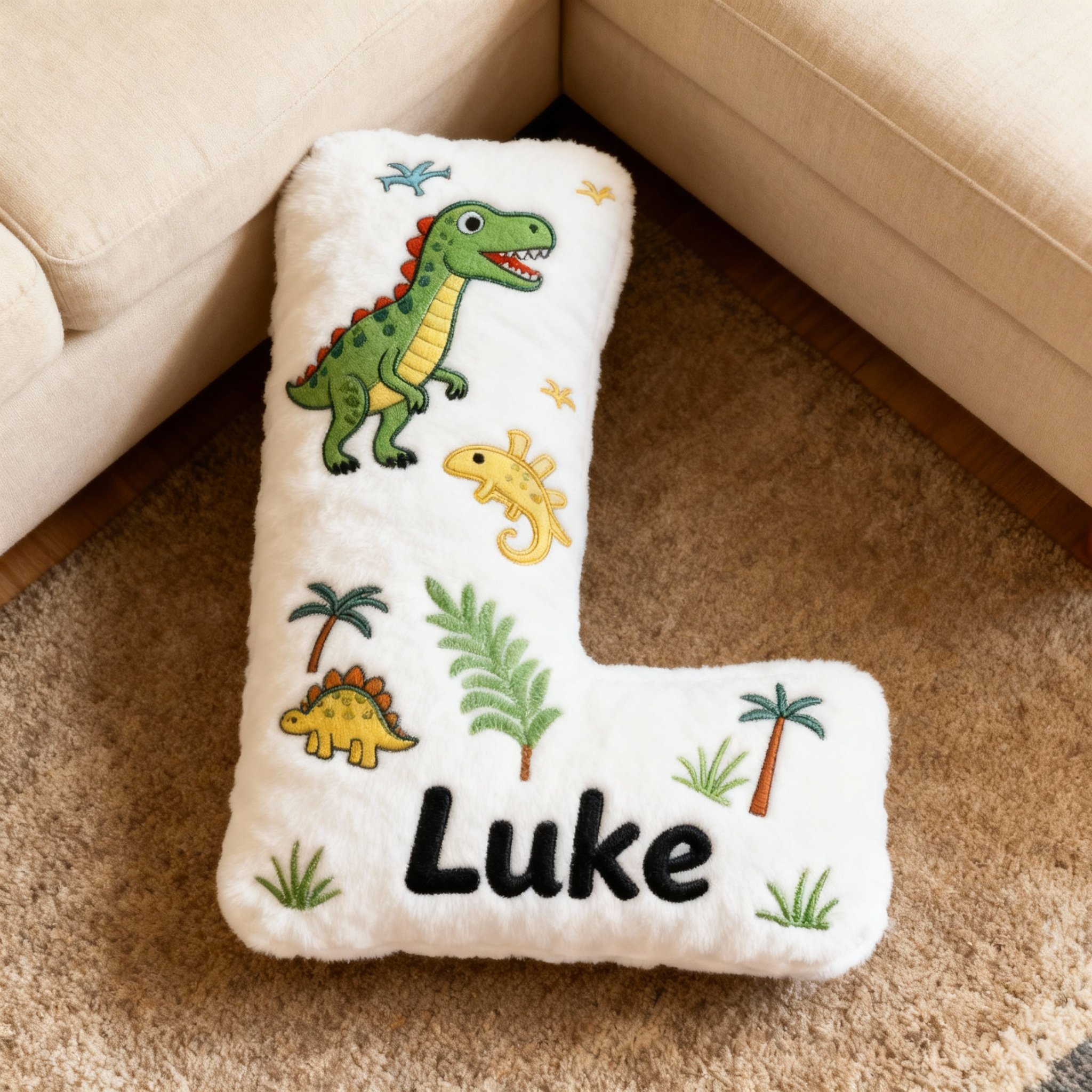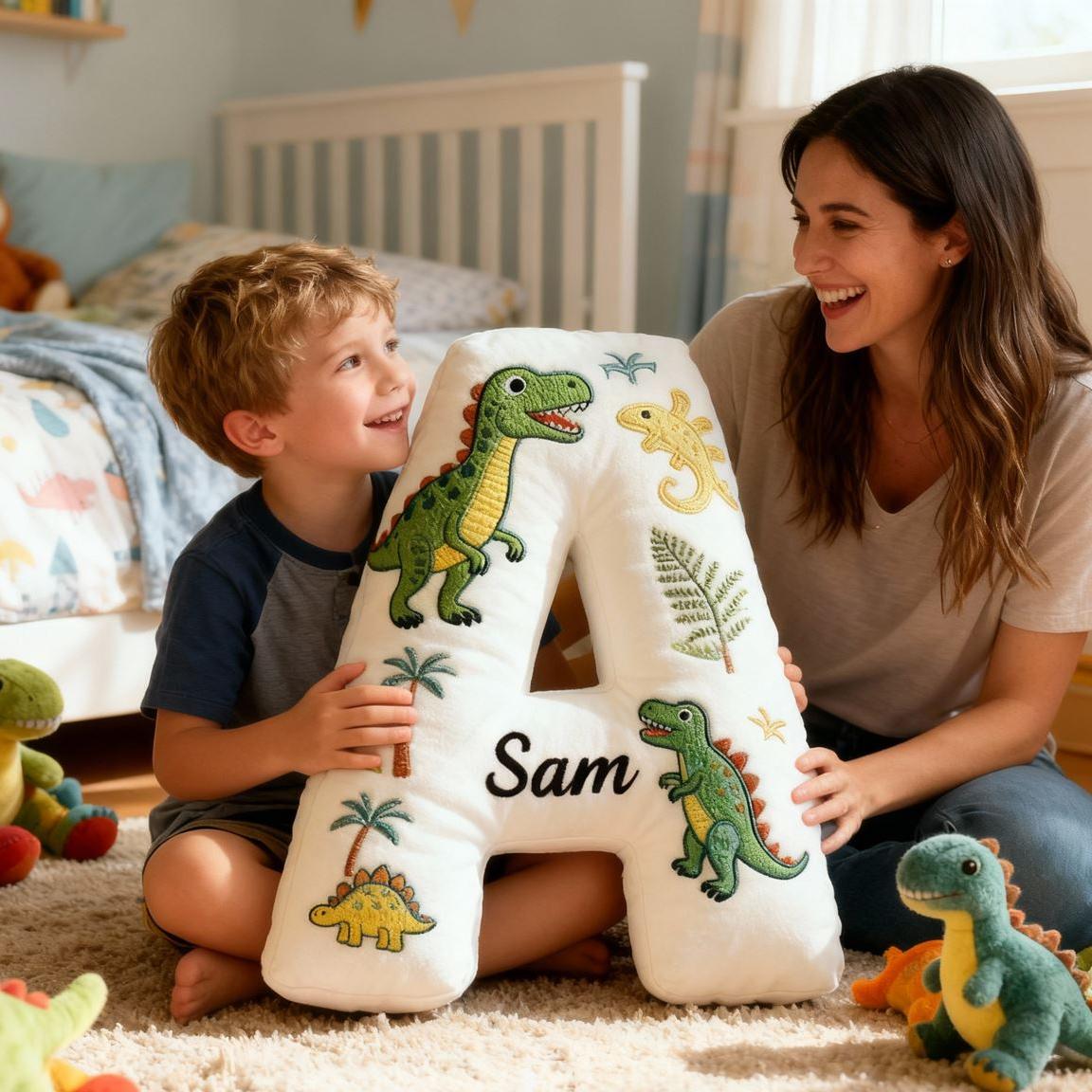 Personalisiertes Dinosaurier-Buchstaben-Kissen mit 3D-Print für Kinder