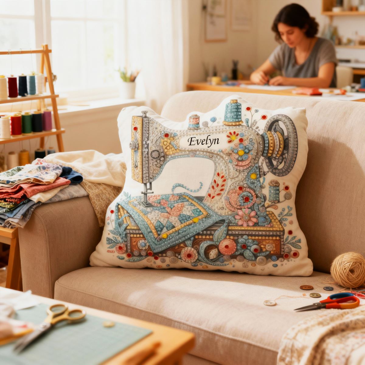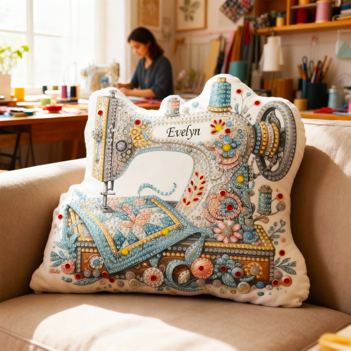 Personalisiertes Kissen mit Aufdruck einer Edelstein-Nähmaschine lustiges Kissen Geburtstagsgeschenk für Kinder