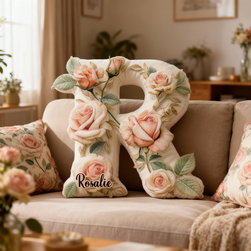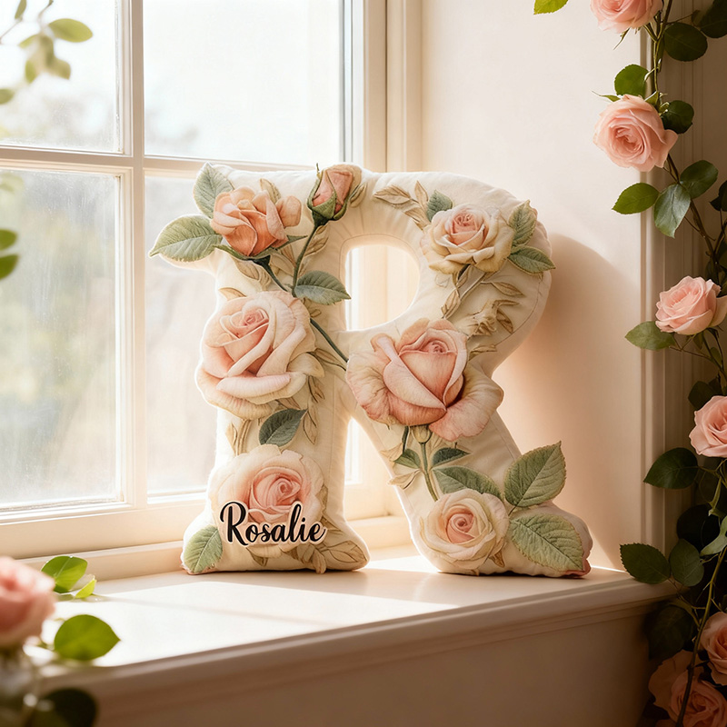 Personalisiertes Buchstaben-Kissen mit rosa Blumenmuster Bestes Geschenk für Mädchen