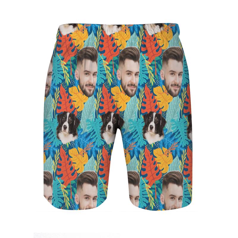 Personalisierte Foto Herren Strandshorts mit schönem Blättermuster Einzigartiges Geschenk für die Familie